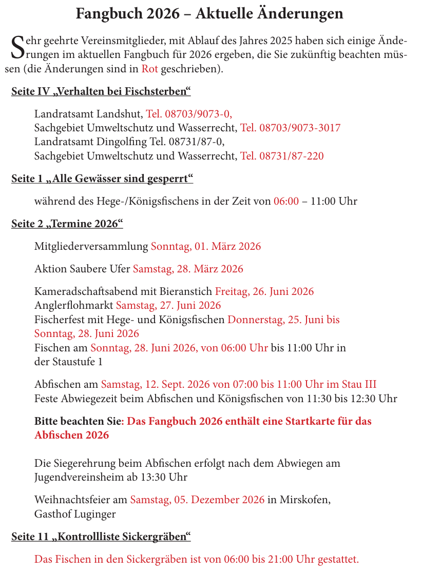 Die Änderungen finden Sie auch im aktuellen Landshuter Angler auf Seite 19 bzw. Seite 27 und 28.